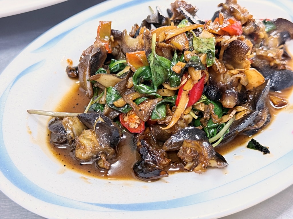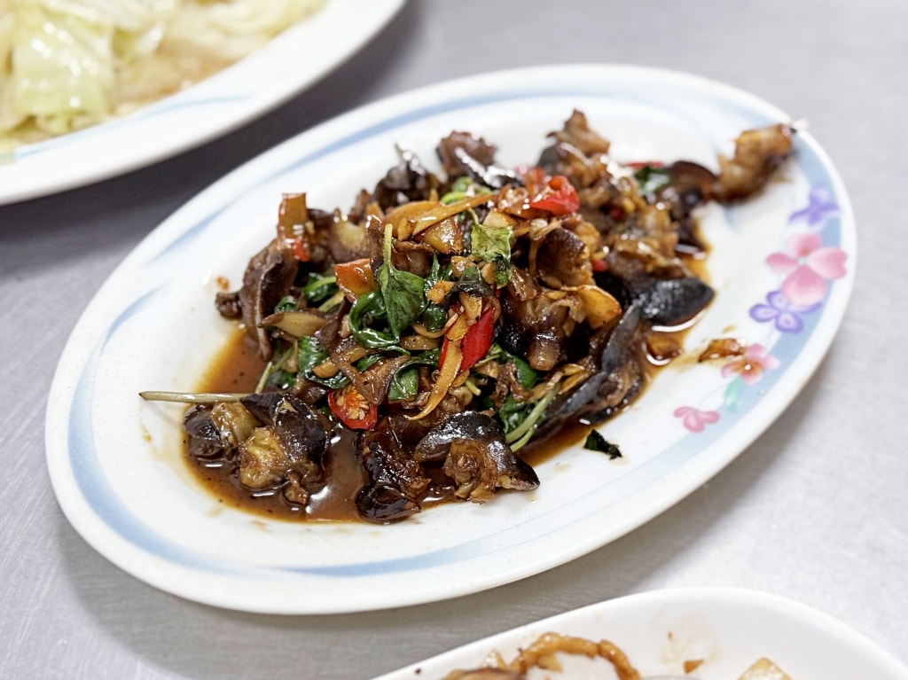 炒螺肉簡直讓我們太驚艷了,阿芷我從在門口的玻璃櫃內看到他們家的螺肉就很期待,每顆都是又大又飽滿,搭配薑、九層塔、蔥花、辣椒下去快炒,鹹香涮嘴且完美保留螺肉的鮮脆口感,重點是這裡的螺肉真的是滿滿一整盤吃起來特別滿足!