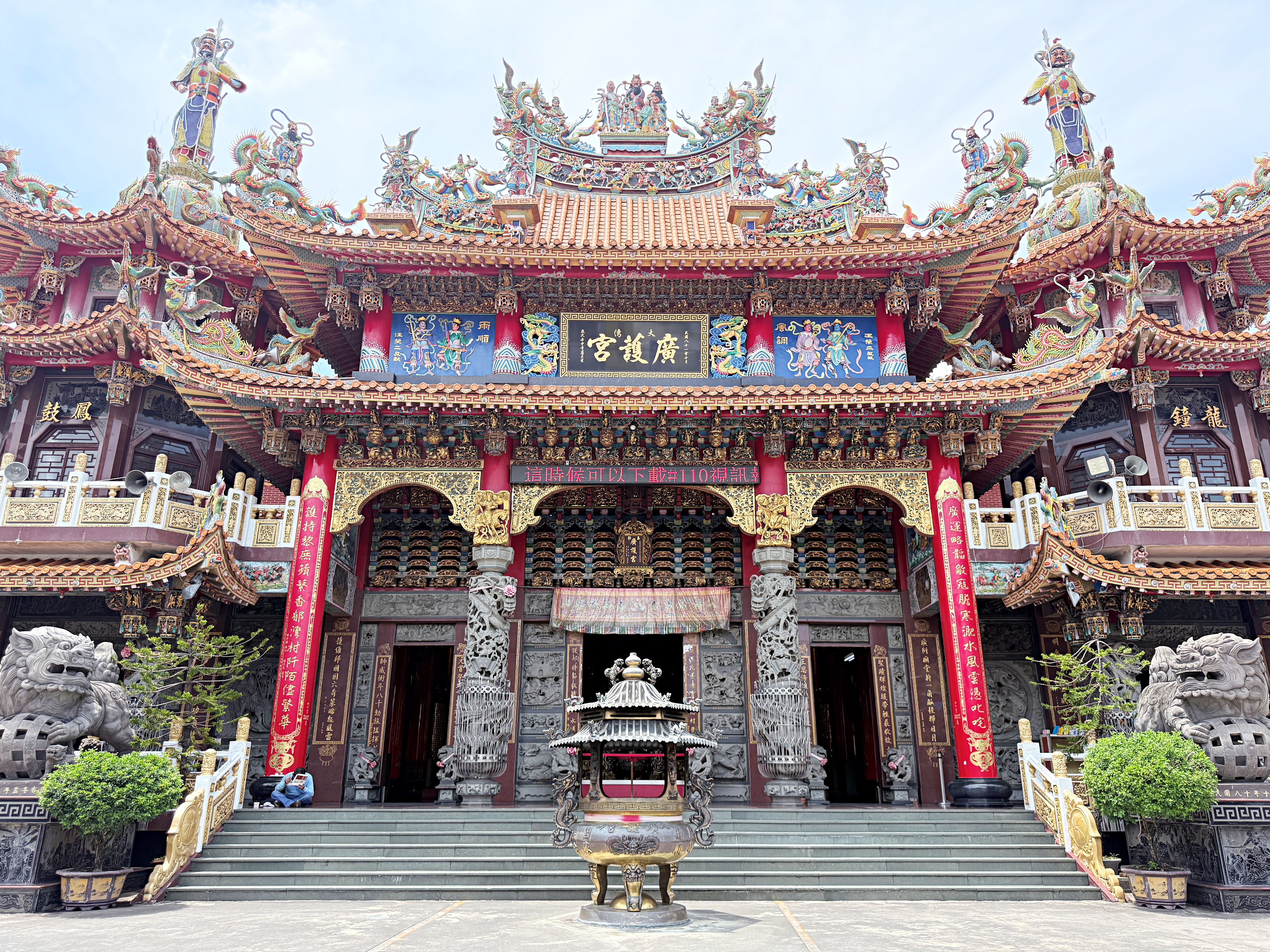 吃飽喝足後我們還去了大灣廣護宮走走逛逛,大灣廣護宮是台南永康區大灣區歷史最悠久的信仰中心,在大灣區已有三百多年歷史,主要供俸廣惠聖王謝安,外觀真的很氣派維護得非常好,非常值得過來走一走拜一拜喔!