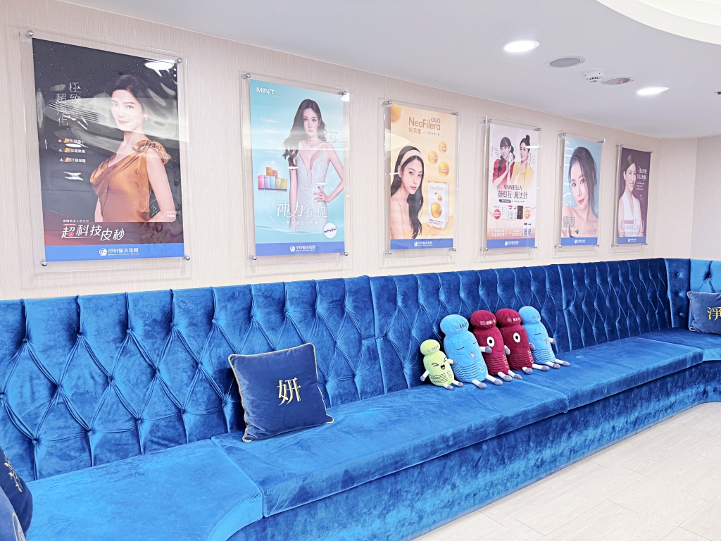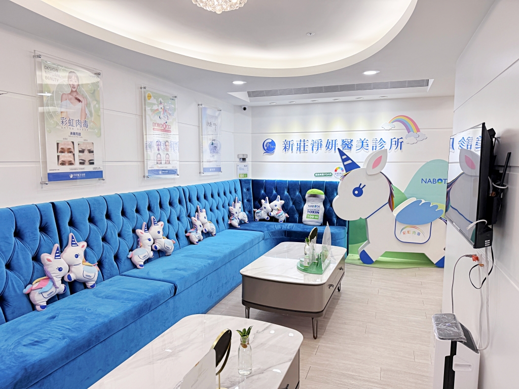 這次我預約的是距離我家比較近的新莊淨妍醫美診所,診所位於新北環狀線捷運幸福站以及捷運頭前庄站中間,步行約10分鐘內皆可抵達非常方便,進店後服務人員會先協助我們換拖鞋,新莊店的環境也非常寬敞舒服,因為阿芷我有提先預約所以諮詢師很快就來帶我去諮詢啦~
