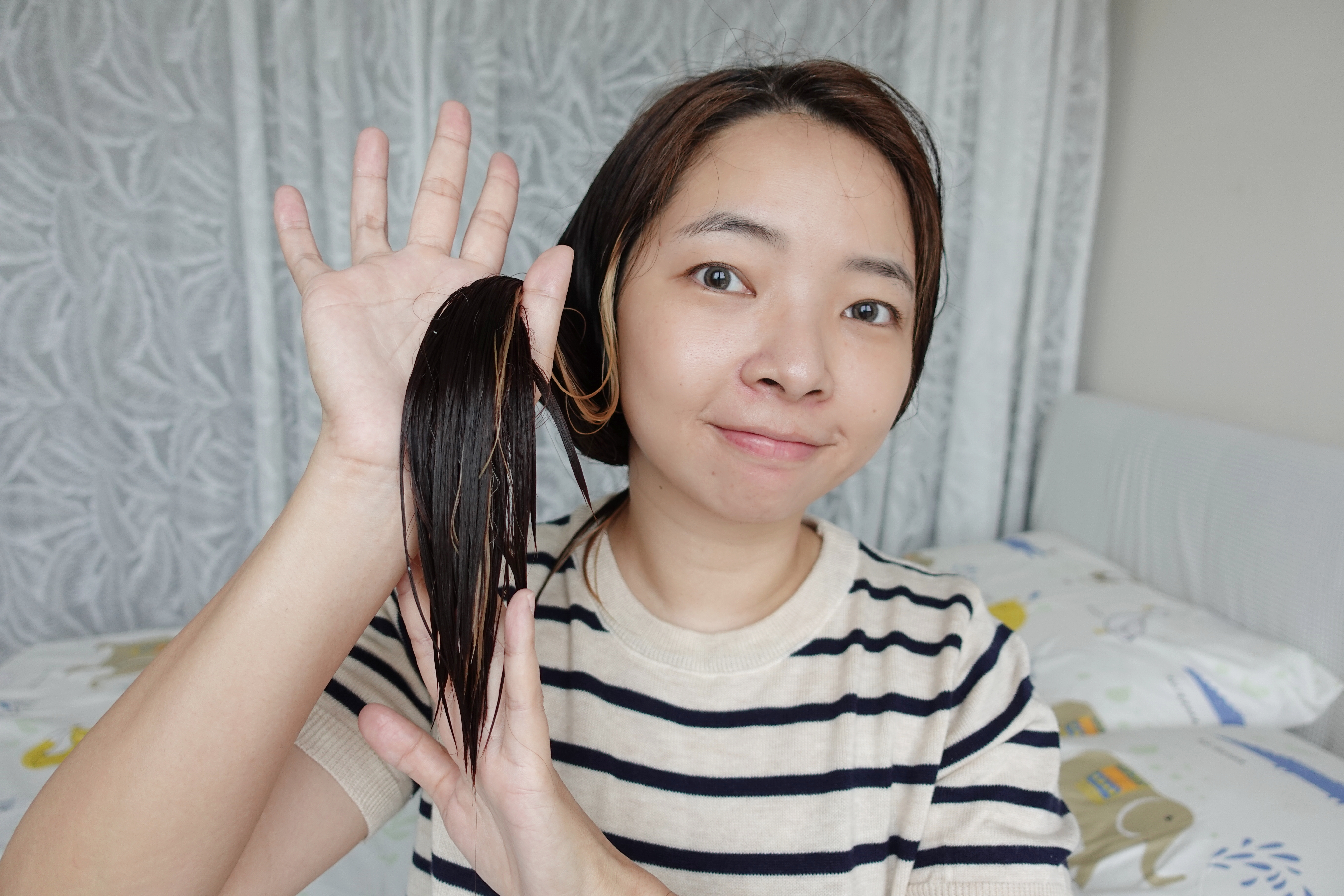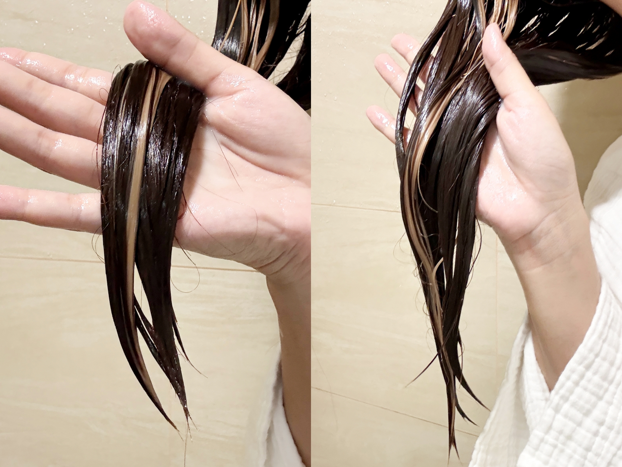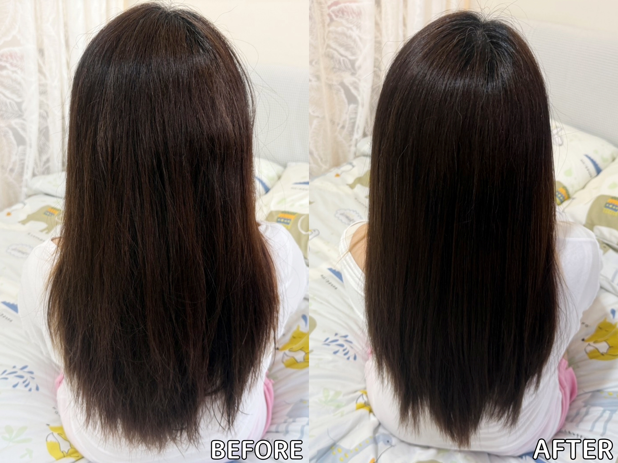 用完韓金修護髮膜後完全沒有抹其他護髮品,直接吹乾就已經很柔順不會打結了!