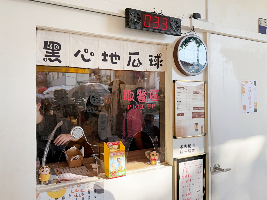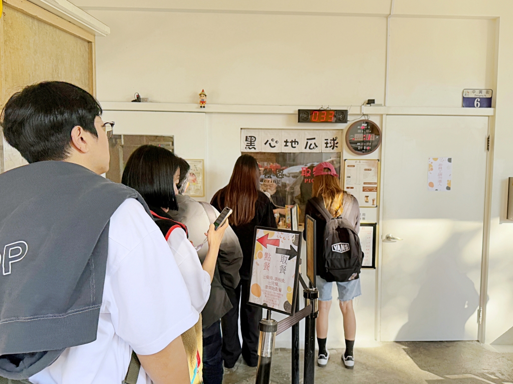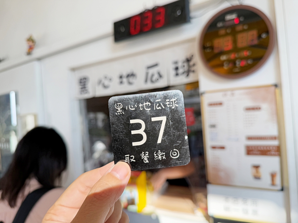 因為地瓜球都是現點現炸,所以需要先到櫃台點餐繳費取號碼牌,接著就依照燈號上的號碼等待取餐,等待的期間也可以到對面的審計新村逛逛,我們大概等了15分鐘左右就拿到熱騰騰的地瓜球了,但如果是假日來訪的朋友就需要做好耐心等待囉~建議先來排隊點餐後再去審計新村裡面慢慢逛,比較不會浪費時間啦!