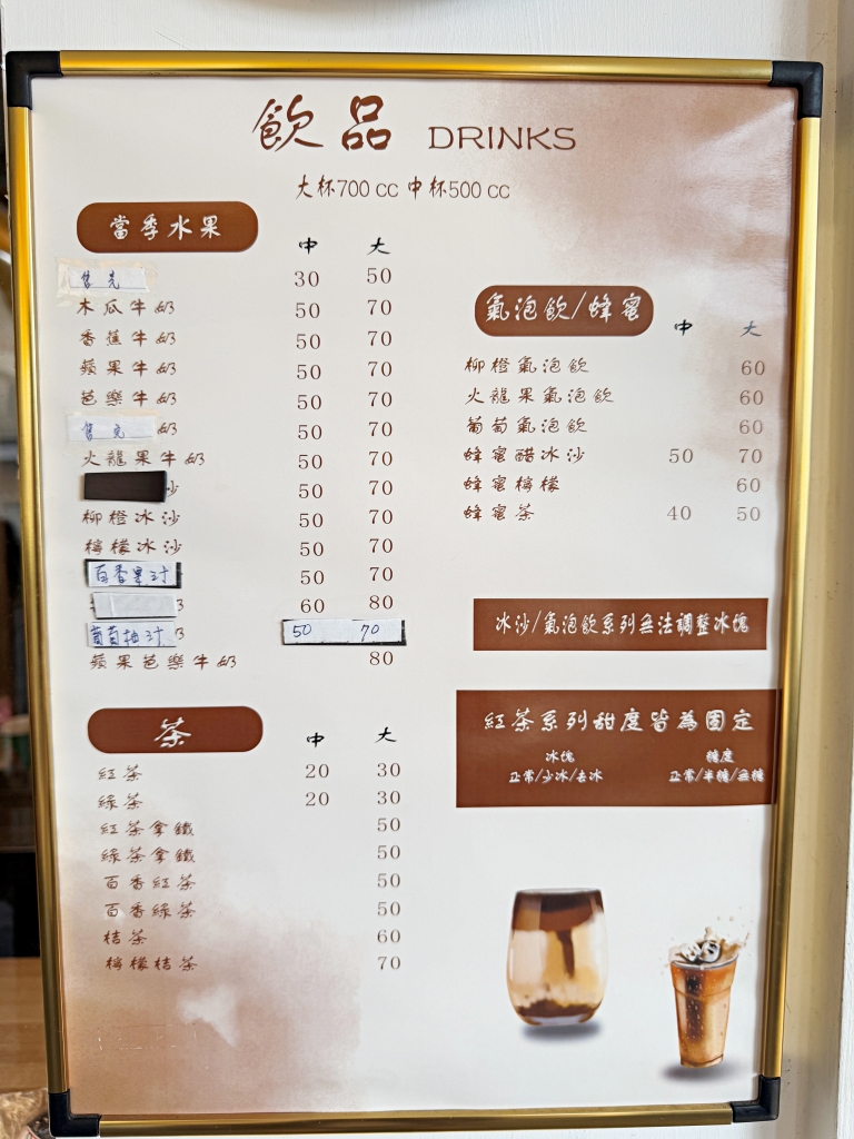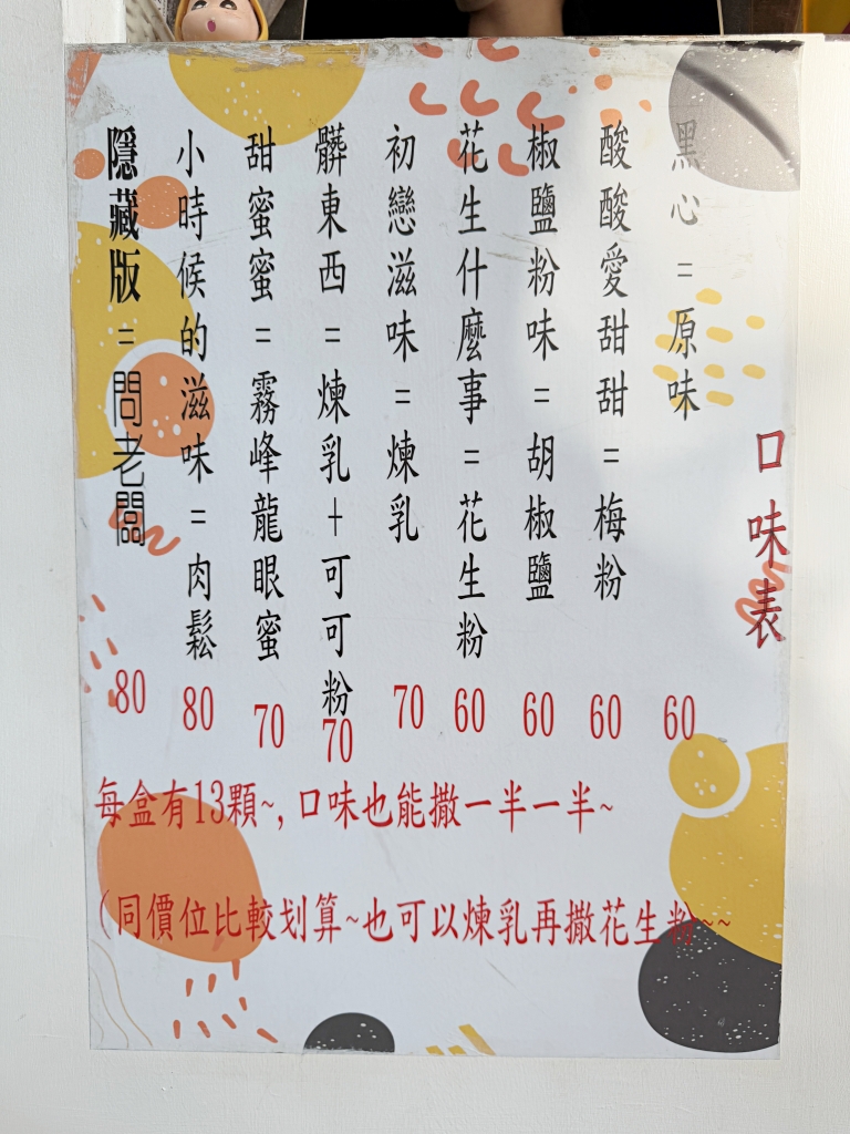 你猜猜黑心地瓜球的菜單資訊,每份黑心地瓜球共有13顆,口味非常豐富甚至還有限定的隱藏版口味,想要嘗試看看的話可以直接詢問店員,口味的部分也可以作半半比較不容易吃膩,除了招牌的地瓜球之外,還有提供許多冷熱茶飲讓大家搭配喔~