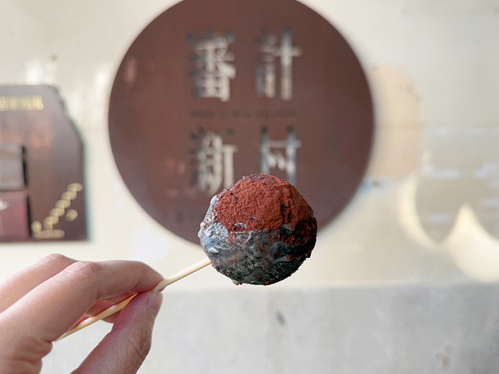 有別於傳統地瓜球較著重於本身的Q度及地瓜的香甜滋味,我覺得這間你猜猜黑心地瓜球比較屬於創意地瓜球,透過加了竹炭粉的黑心地瓜球搭配肉鬆、煉乳、可可粉、花生粉等不同的配料,讓大家在視覺及味覺上面都有不同於普通地瓜球的體驗,如果有來到審計新村走走的話,推薦大家可以來嘗試看看喔!