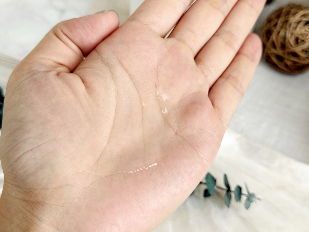Gelovery PDRN玻尿酸精華水凝露為透明的水狀凝露質地,帶有淡淡的療癒植萃香氣,接著就來跟大家分享阿芷我平時的使用步驟啦~